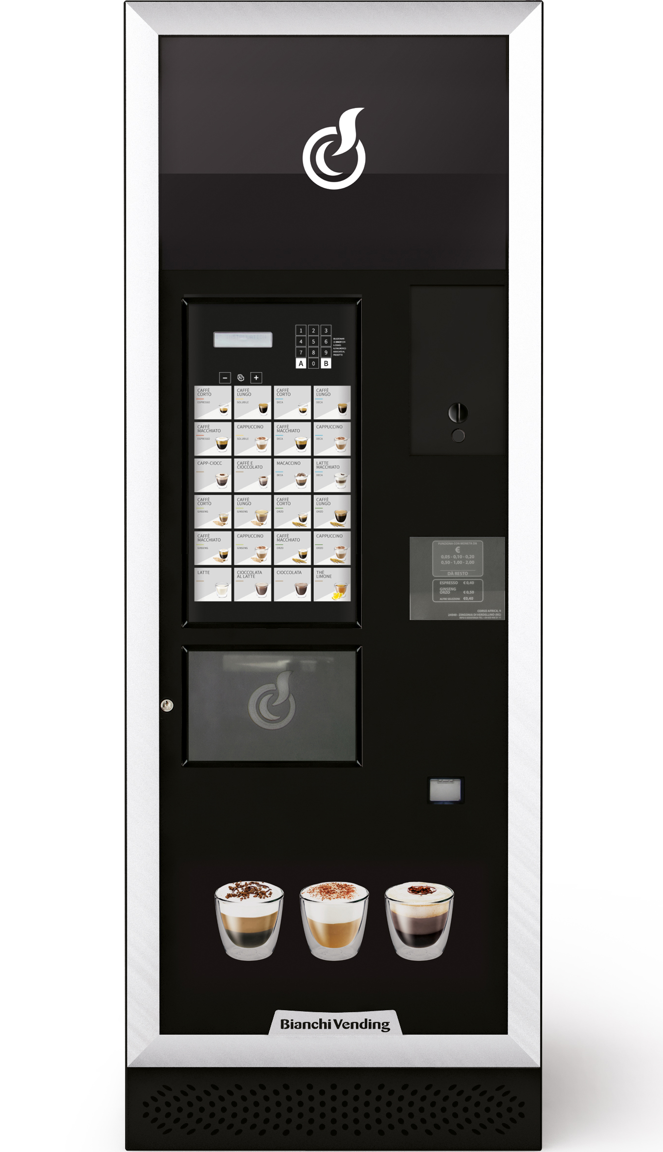 NOVÝ DESIGNOVÝ KONCEPT NABÍZEJÍCÍ MODULARITU A FLEXIBILITU Jednoduché ovládání s moderním designem. Kapacita 700 kelímků, 24 tlačítek. Atraktivní moderní design. 2 tlačítka dávkování curku. Akustický signál po dokončení extrakce. 32digit. alfanumerický displej, možnost istalace 7’’ LCD displeje umožňující větší přehled a dodává zákazníkovi informace o každém produktu. Zesílené dveře a panty proti vandalství. Snadno dostupné a vyjímatelné součásti stroje. Nastavitelný dávkovač kelímků (70 - 73 mm) a dávkovač míchátek na 90 nebo 105 mm míchátka. Automatická regulace mletí a teploty každého nápoje.